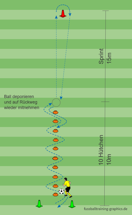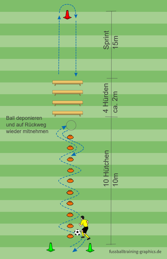 Ein Fussball-Parcours ist eine Übung mit verschiedenen Stationen.